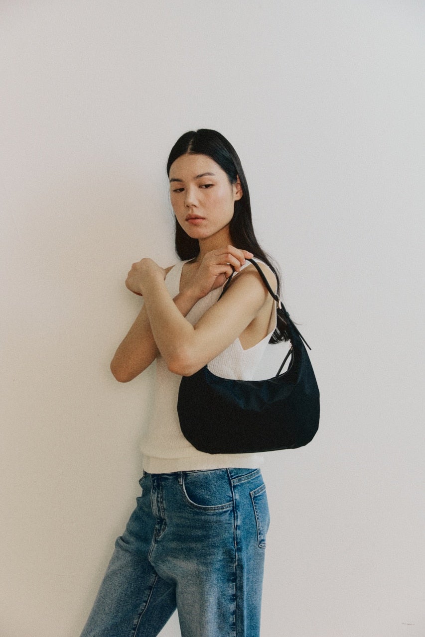 루이스엔의 패브릭 가방 시리즈인 L나일론 호보백입니다. 생활방수가 되는 나일론 바디에 천연 소가죽 스트랩을 사용하였습니다. 스트랩 조절로 귀여운 토트백과 자연스런 숄더백 두가지 스타일로 연출이 가능합니다. 눈비에도 강한 소재로 계절에 구애받지 않고 사용 가능하며 미니멀한 디자인으로 어느 착장에나 쉽게 착용하실 수 있습니다.