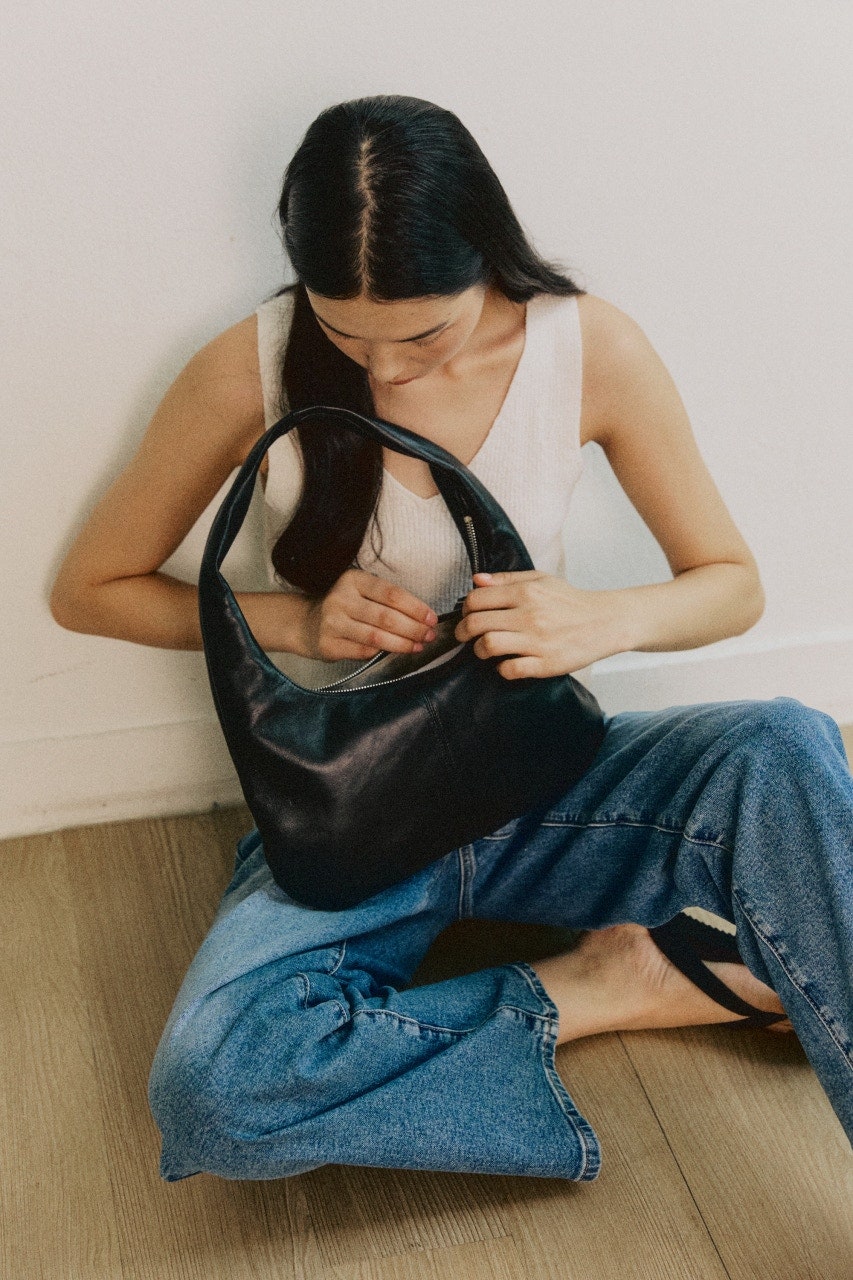 유연하고 부드러운 촉감의 양가죽이 사용되었습니다. 미니멀한 디자인으로 유행에 구애되지 않고 숄더는 물론 핸드로 들었을 때 자연스럽게 잡히는 쉐입이 매력적인 제품입니다.